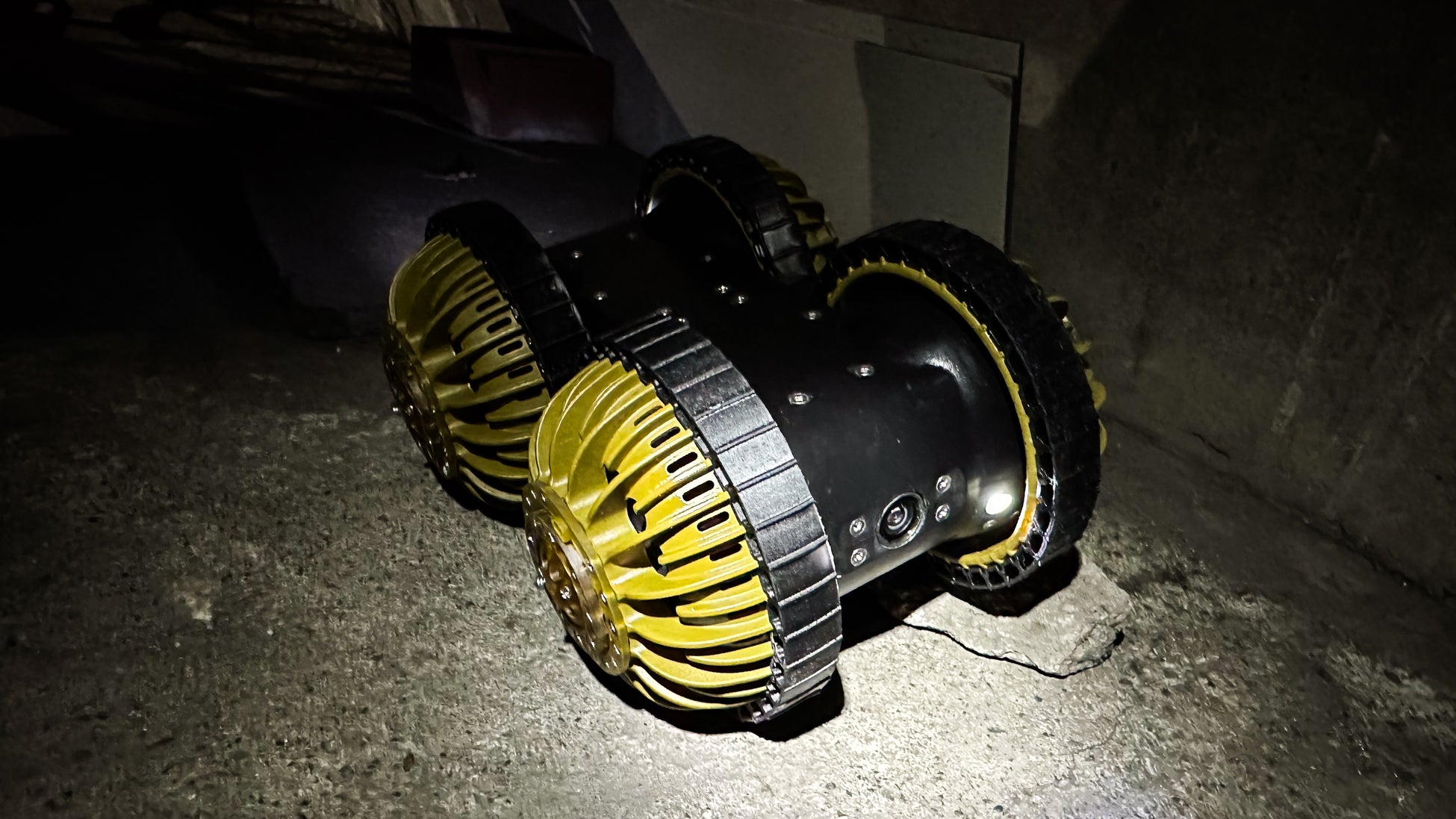 【構造変更】2輪を4輪に変更し、配管等障害物の乗り越え性能を上げる。