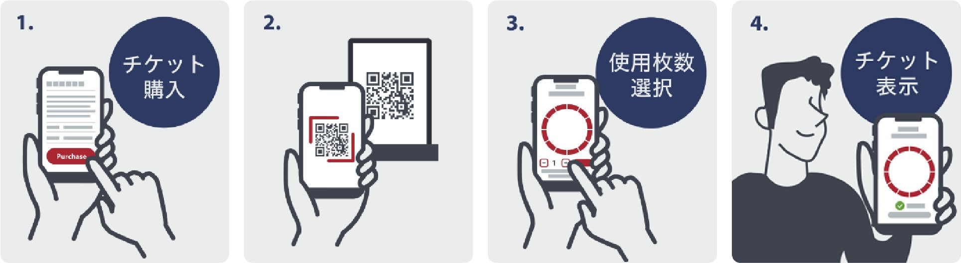 チケットを使う施設に設置されたQRコードを読み取り、使用枚数を選択した上で、係員に提示します。