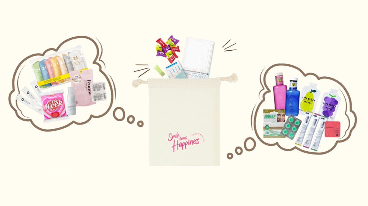 生理用品をはじめ、リフレッシュシートや夜用ショーツなど12種類の衛生用品が入っています。