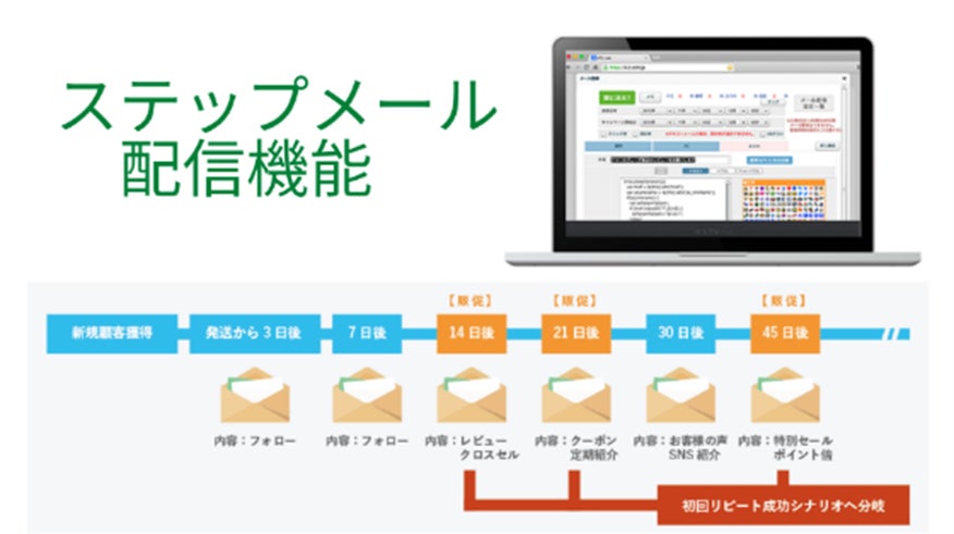 ・セグメントに応じて最適化した各種メール(ステップメールを含みます)を配信する