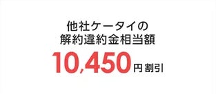 他社スマホ・ケータイの解約違約金相当額を毎月の通信料金から合計10,450円割引します。