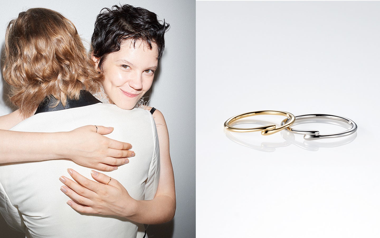 親指から繋がるお⼆⼈の運命のハグリングいつまでも“ギュッ”としたい気持ちを意味します。