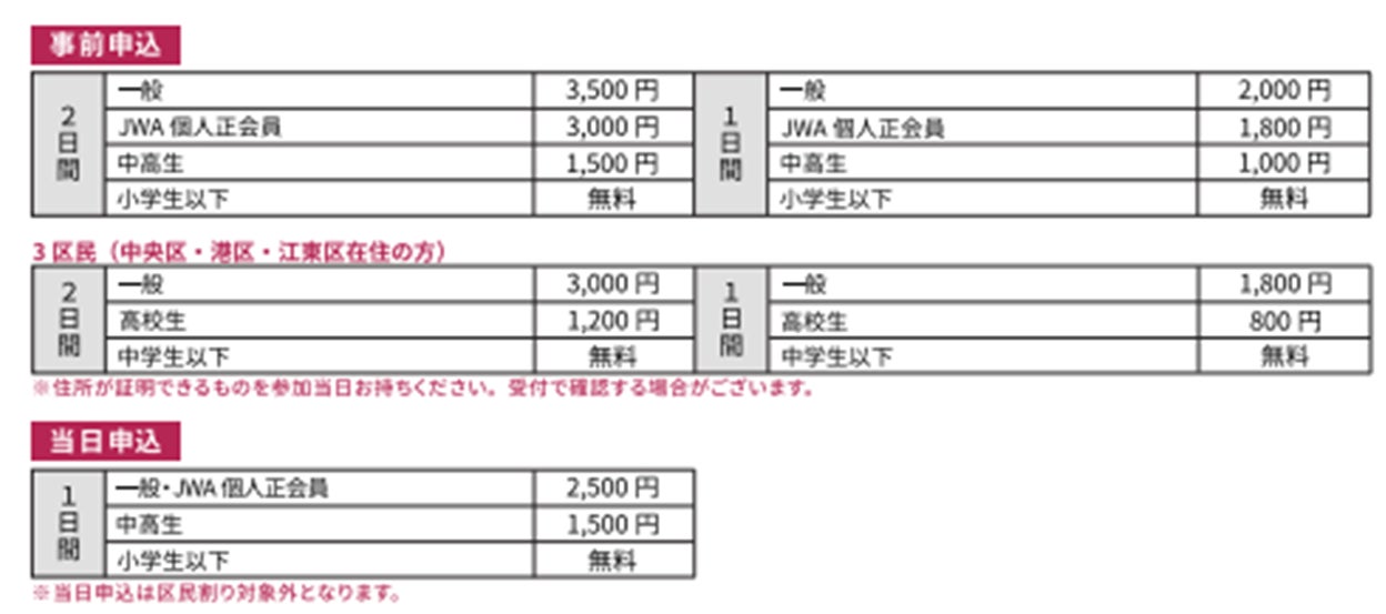 ※当日申込のお支払いはお釣りの無いよう、ご協力をお願いします。