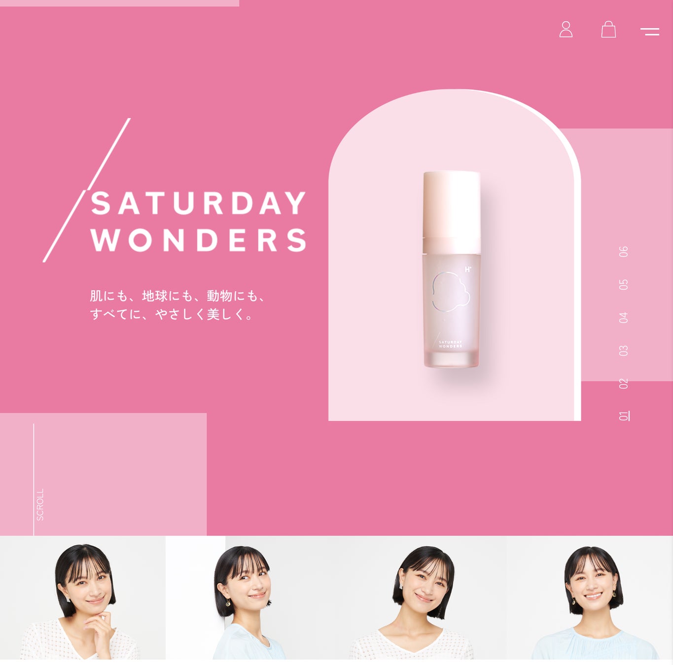 モデルや女優、ママとしても活躍中の高橋ユウさんを、肌がよろこぶ。心が弾む。明日をちょっと、HAPPYに。というコンセプトで誕生したSaturday Wonders(サタデーワンダーズ)のイメージにぴったりな方で、公式サイトへ起用させていただきました。