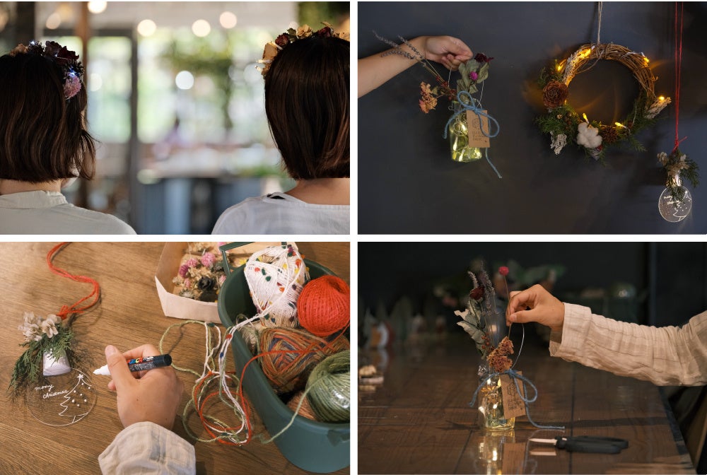 また、「100の体感」アクティビティを開催するインフォメーションでは、作って持ち歩けるボトルランタンのほか、クリスマスシーズンにぴったりな「ひかるリース」などのアクティビティもご用意しております。