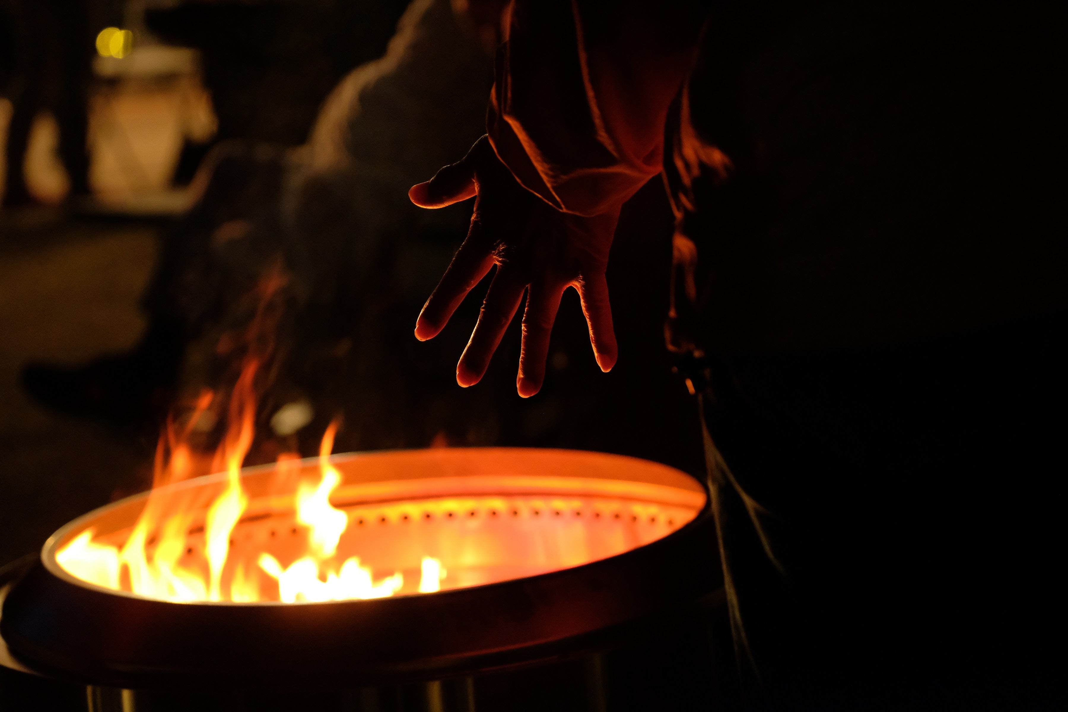 薪割りや虹色に輝く炎で、昨年よりパワーアップした焚き火