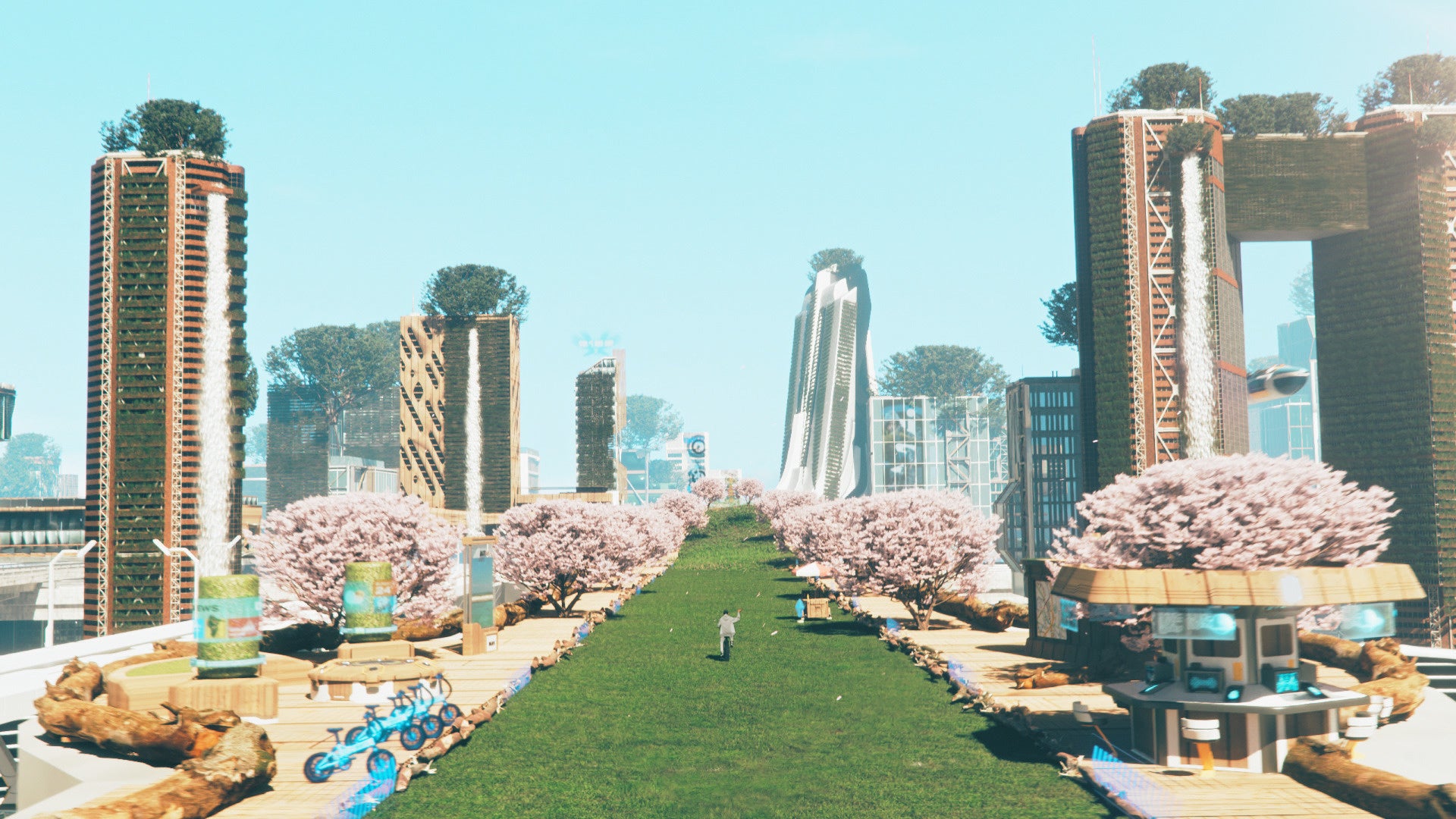 100年後の未来をフルCGで描き、理想とする東京の街をMATE. BIKEで颯爽と走り抜けます。