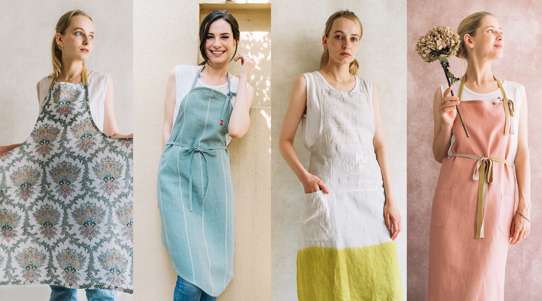 リトアニアリネン・コルトレイクリネン・イタリアリネンなど、世界各国の高品質なリネンを使用した、高級感のあるエプロンが人気です。
