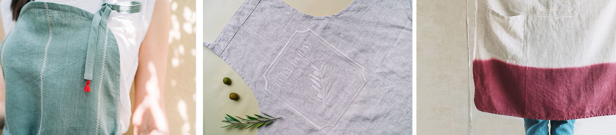 同じリネンの素材でも、それぞれ特徴が異なります。つけていることを忘れるくらい軽いエプロン、リネンなのにシワになりにくいエプロンなど、お客様のお好みに合わせてご提案しております。