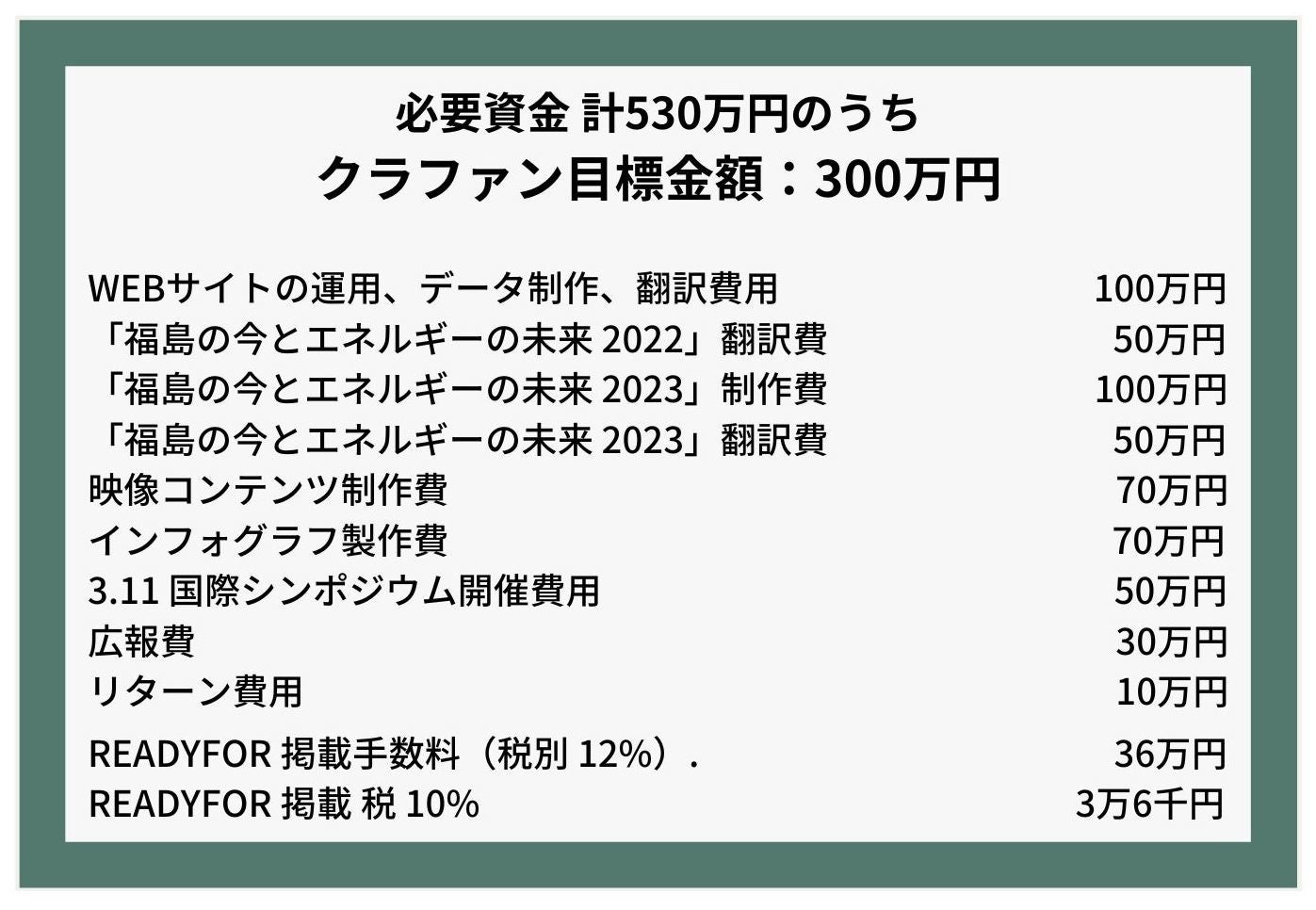 支援金使用目的:いただいた寄付金は、全て「ふくしまミエルカPROJECT」の運営費用や、被害者の証言映像、原発やエネルギーをめぐるわかりやすいインフォグラフの制作費、データ制作や翻訳作業などの資金に充てさせていただきます。