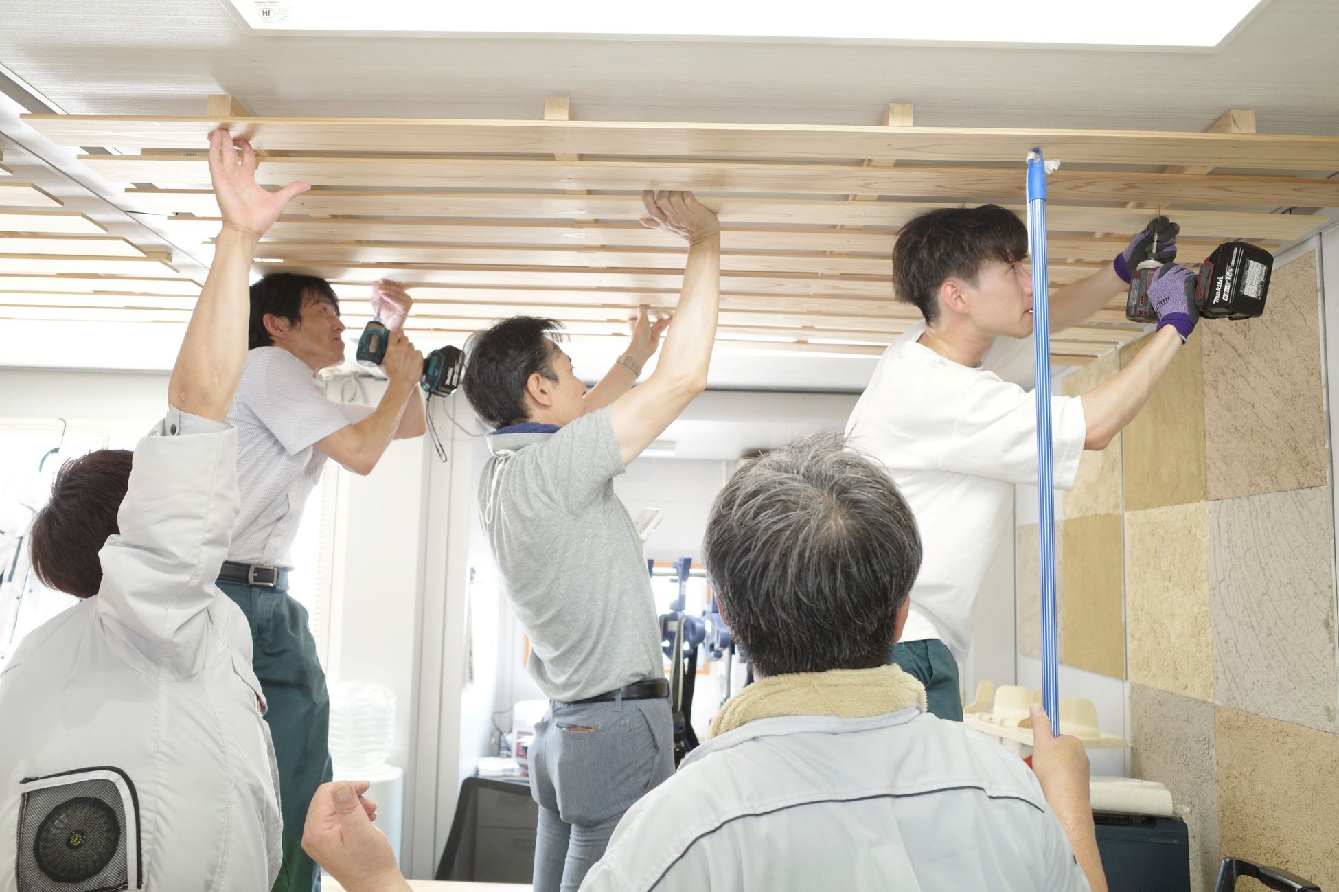 施工については、実際に「Wellness Container」を使用する現場社員(状況や意向に応じて事業主様、設計事務所様など)によるワークショップを実施します。自分たちが使用する空間の内装を、自分たちの手で造り上げていくことで、“モノへの愛着心”が一層育まれることが期待されます。また、本ワークショップは、当該現場社員が一丸となって製作に携わるため、現場の“チームワーク”をより高めることも見込まれます。モノづくりの最前線にいる現場社員にとって、これらは高品質な構築物を造りあげる礎の一つとなります。