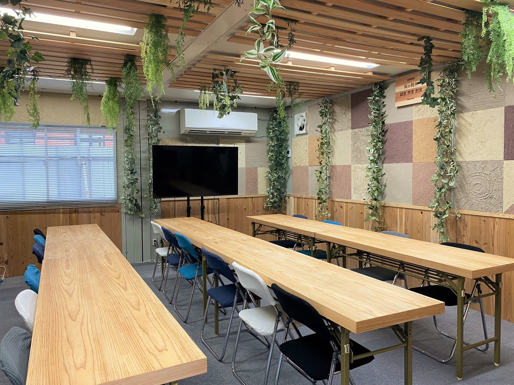 当社は奈良県が発祥の地であり、奈良県吉野山にて伐採される「吉野杉」を、内装・什器に活用しました。腰板、天井ルーバー、机天板*など、木材をふんだんに取り込むことで、木の香りが事務所内に漂い、リラックス効果も生まれます。端材を積極的に利用することで、限りある資源の有効活用にもなります。また、土壁パネル同様に乾式で取り付けができるため、容易な設置・撤去を実現し、転用・分別が可能です。人間の健康だけで