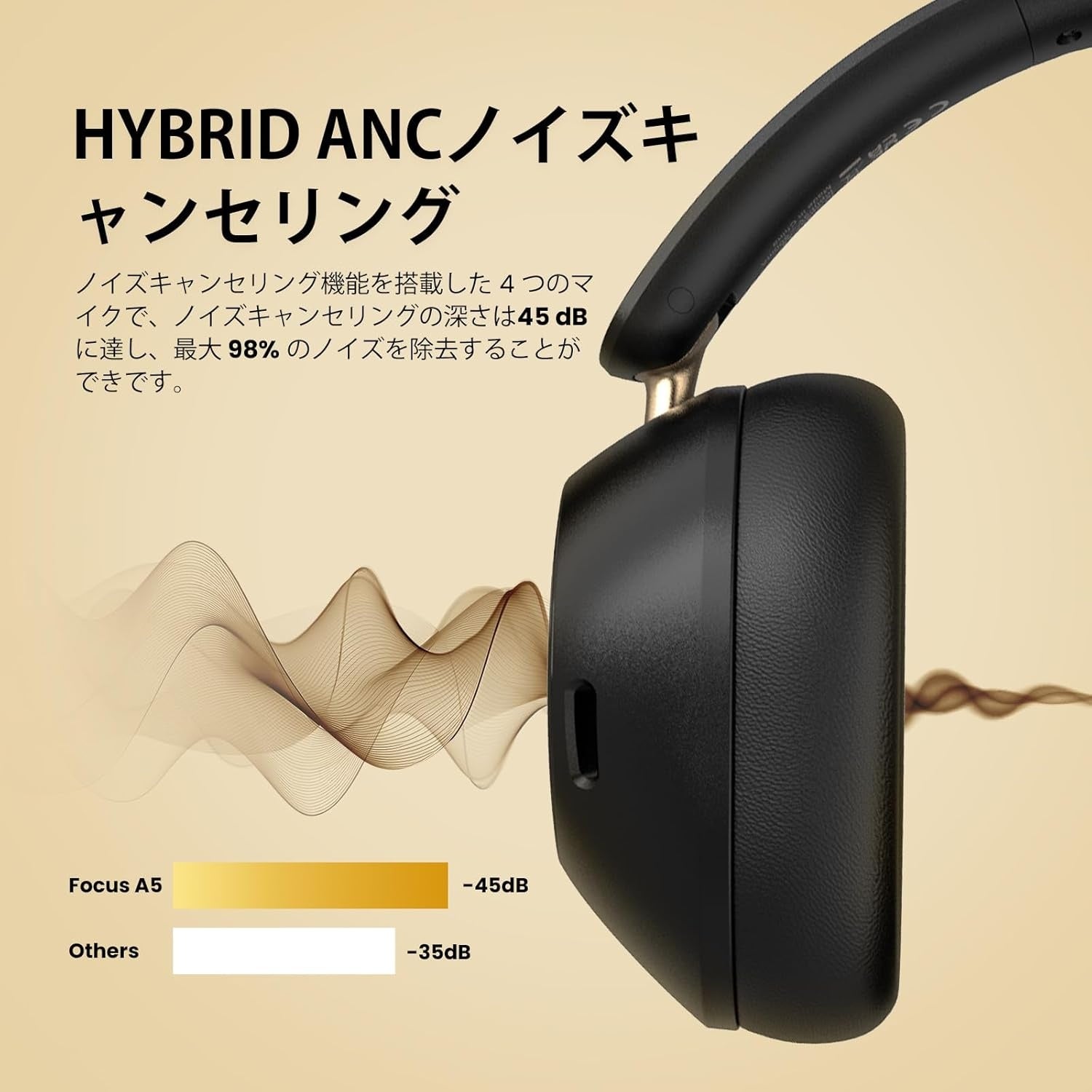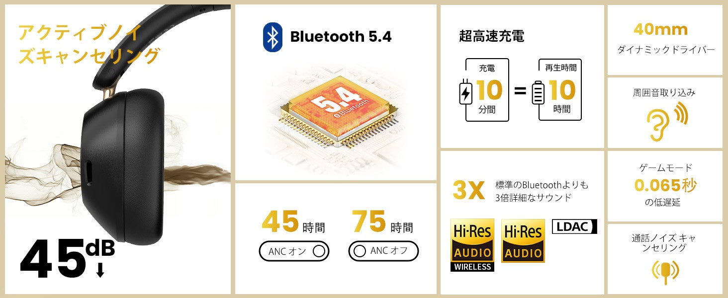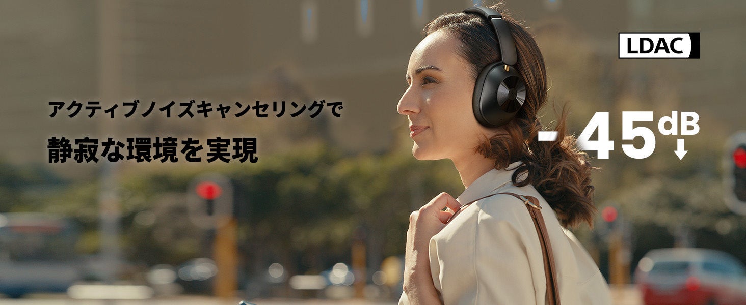 -45dBのアクティブノイズキャンセリングで電車でも飛行機でも静寂な環境を実現!
