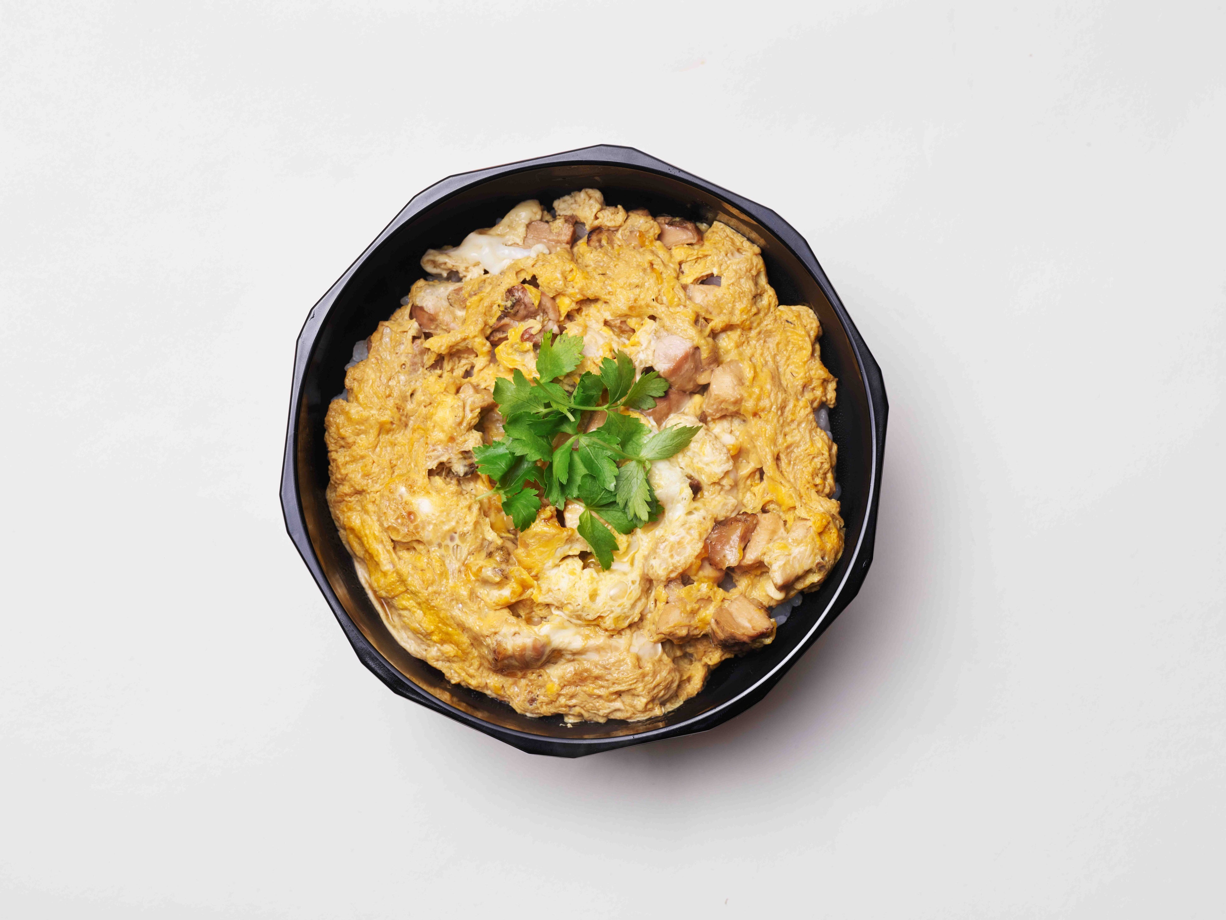 炭で香ばしくジューシーに炙った丹沢滋黒軍鶏と天明7年(1787)創業の岡直三郎商店のこだわりの日本一しょうゆを2種ブレンドした特製の「かえし」を入れたセットになっております。卵を2個ご用意いただき加熱するだけで直営カフェで提供している「親子丼」を再現できます。