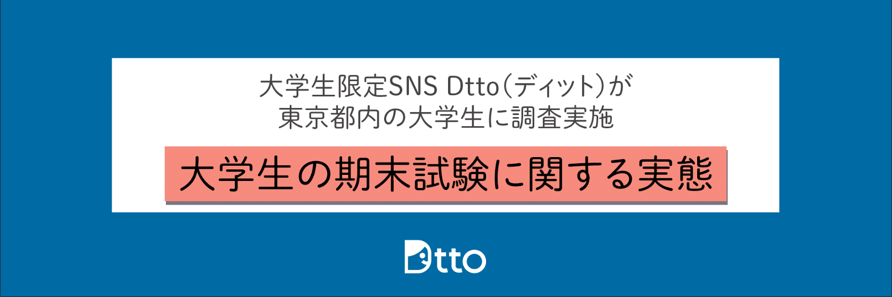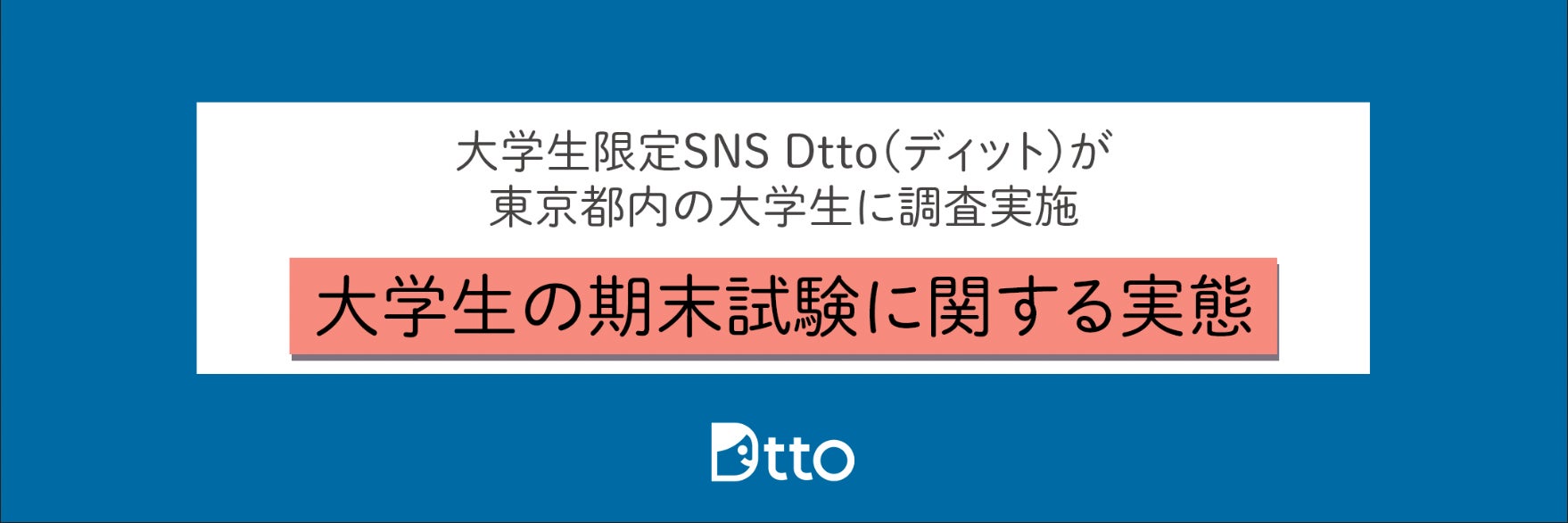 大学生向けSNS「Dtto(ディット)」(https://www.dtto.com/)を運営するDtto株式会社は、大学生(※1)を対象に期末試験および試験対策に関するアンケート調査を行いました。半数以上の大学生が対面形式で期末試験を受けており、オンライン試験の実施割合を既に超えていることがわかりました。また、試験期間中には睡眠時間の不足に悩む学生が多く、勉強時間の確保のために睡眠を犠牲にする学生が多いことが判明いたしました。