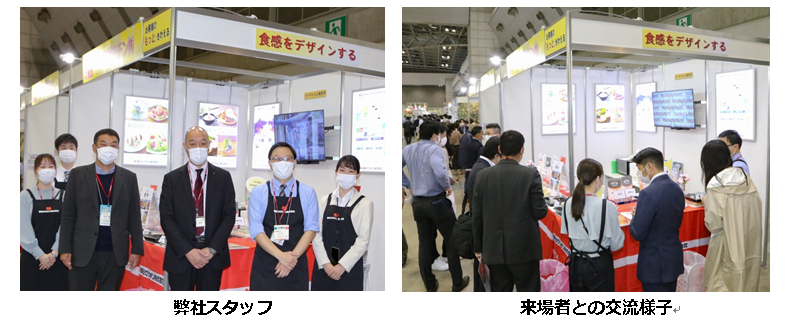 開催期間中は外食チェーン、宿泊施設関係、中食向け総菜メーカーやセントラルキッチン関係など多くの方々にご来場いただき、弊社独自素材を使った新食感が好評を得ました。