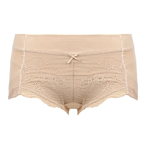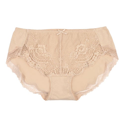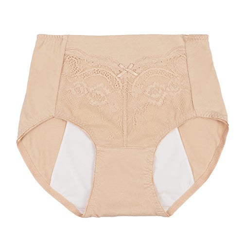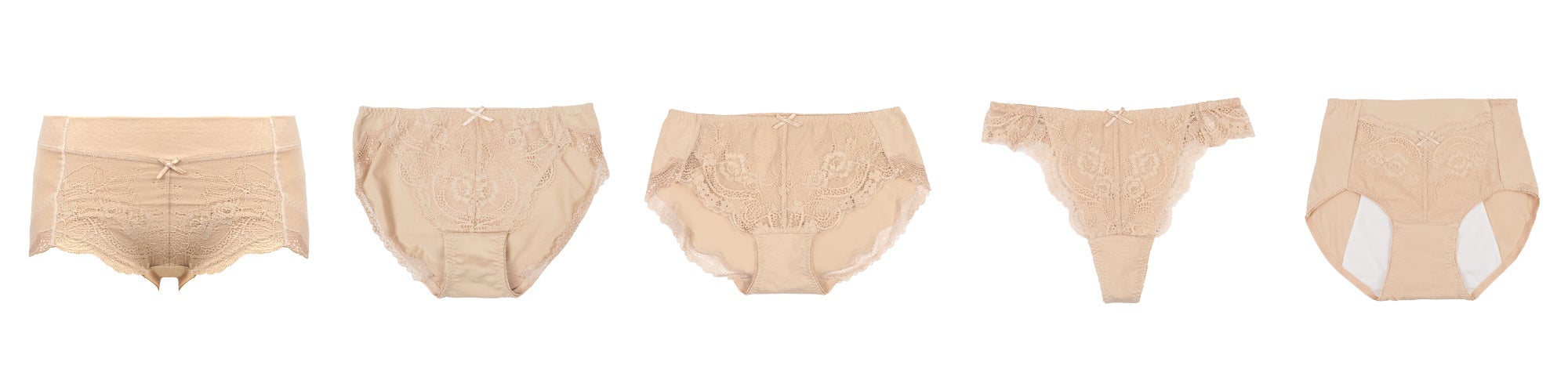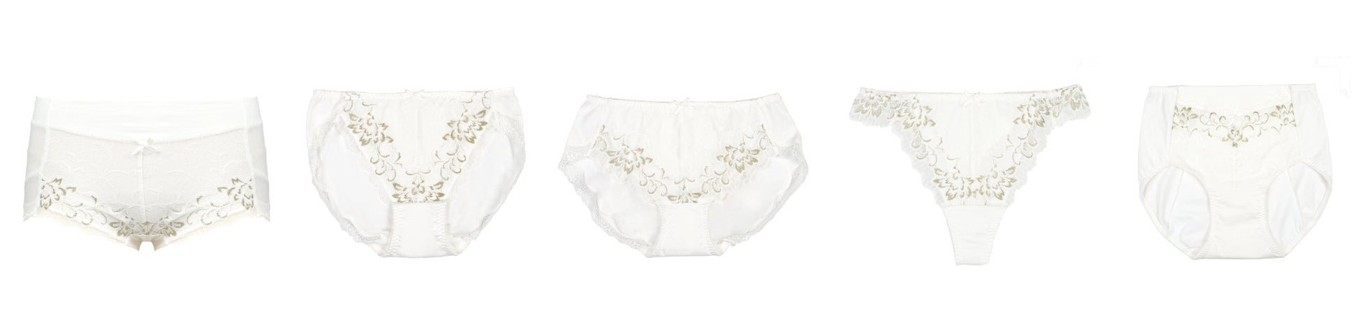 「グラモアブラ」の強みはショーツにも活かされています。デザイン面ではブラとお揃いの繊細な花柄と幾何学柄レースを使用。機能面ではファンデーションメーカーとしての自社のノウハウを結集、「グラモアブラ」同様バリエーションに応じた機能を備えています。