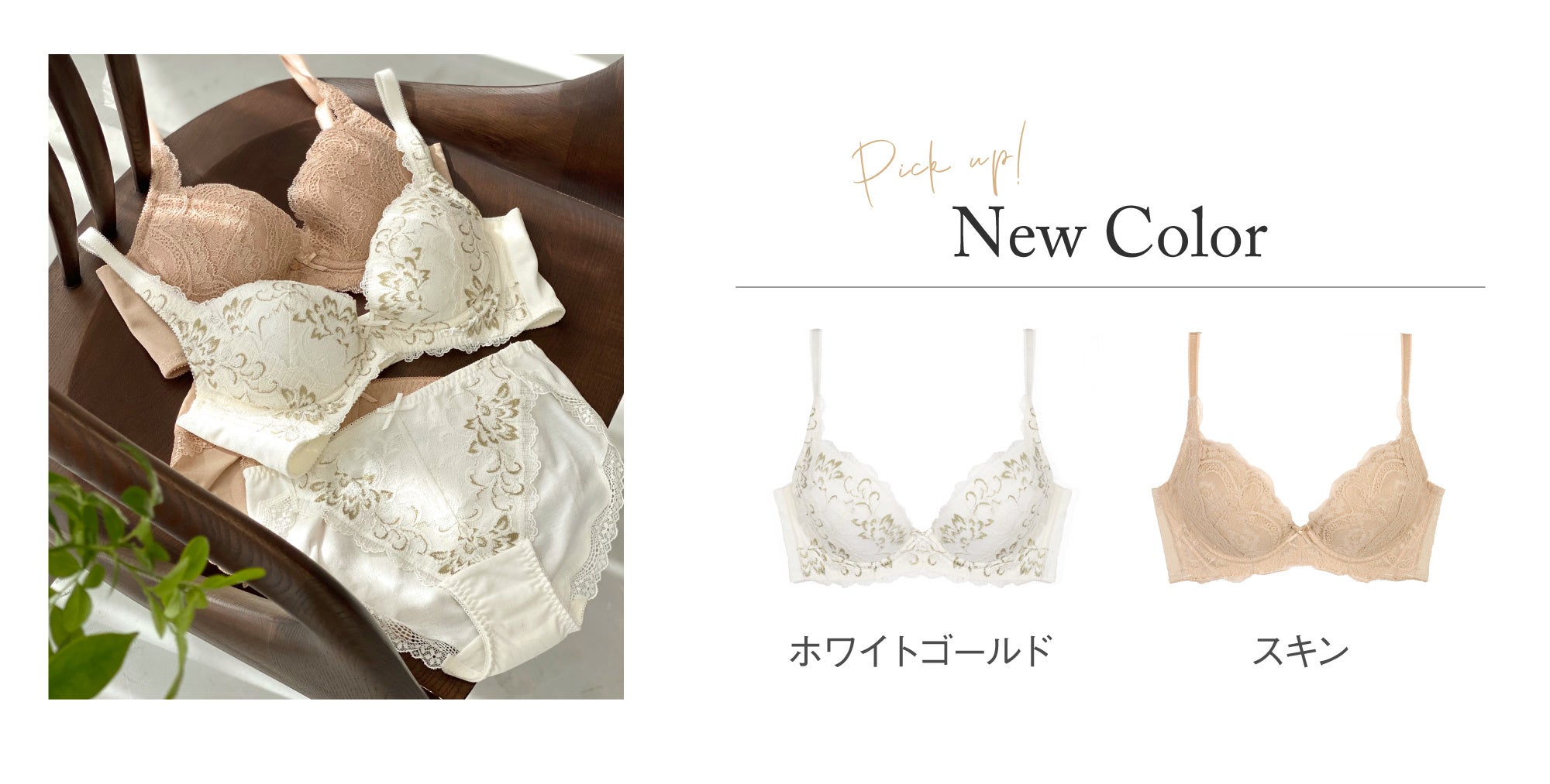 お客様との距離感を縮め、直接意見を取り入れたいと、『glamore(グラモア)』では2021年5月に「グラモアブラカラー総選挙」を実施。その中で得票数1位(12.4%)を獲得した「ホワイトゴールド」。定番とは違った花柄のレースが印象的なホワイトゴールドを春のスポットカラーとして復刻します!