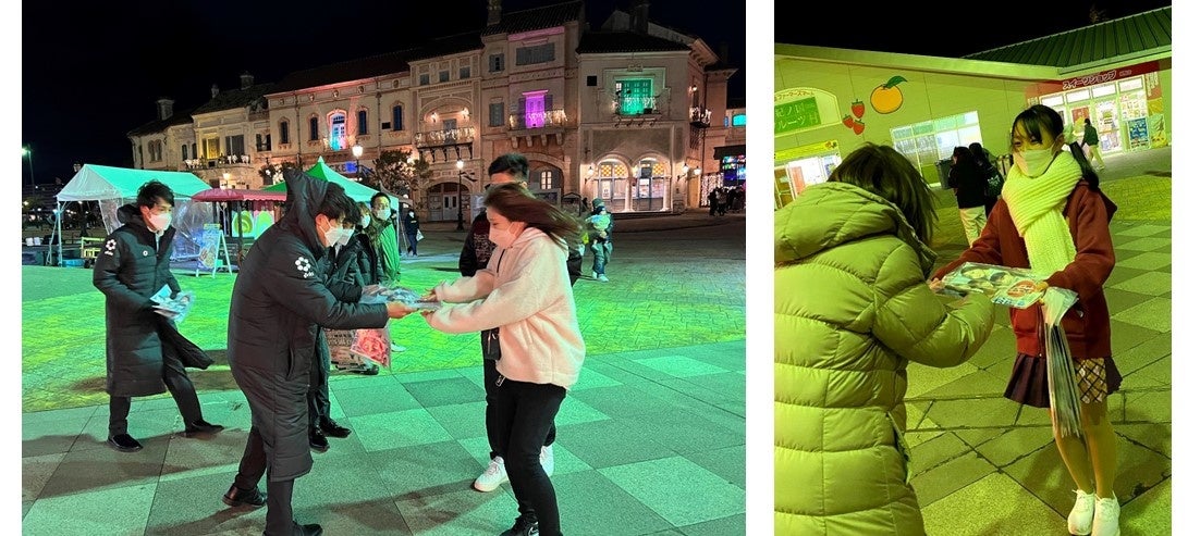 イベント当日は、会場内に「知って、肝炎プロジェクト」特設ブースを設置し、ポスターや動画を公開。また、佐藤三兄弟とFun×Famが、イベント来場者や観光客に直接リーフレットの配布を行い、同プロジェクトの意義を真剣に伝えました。