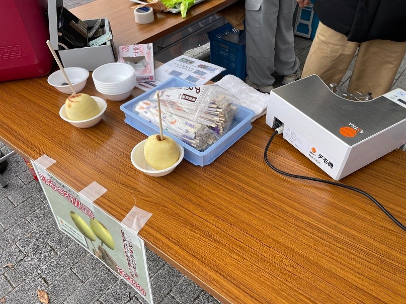 果物皮むき機のアストラ、地産リンゴを使用した「まるごとりんご」の完売をお手伝い。
