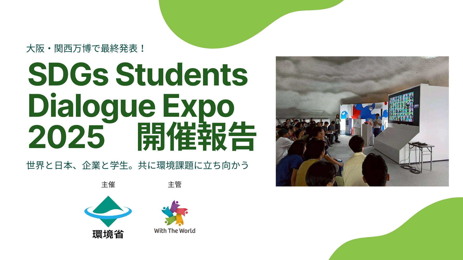 「SDGs Students Dialogue Expo 2025(以下、SSDE)」は、日本9大学および世界6か国の大学生等が協働し、企業が提示する日本の環境課題に対して解決策を提案するプログラムです。本プログラムは環境省が主催、株式会社With The Worldが主管としてアクティビティ内容の企画から学生の