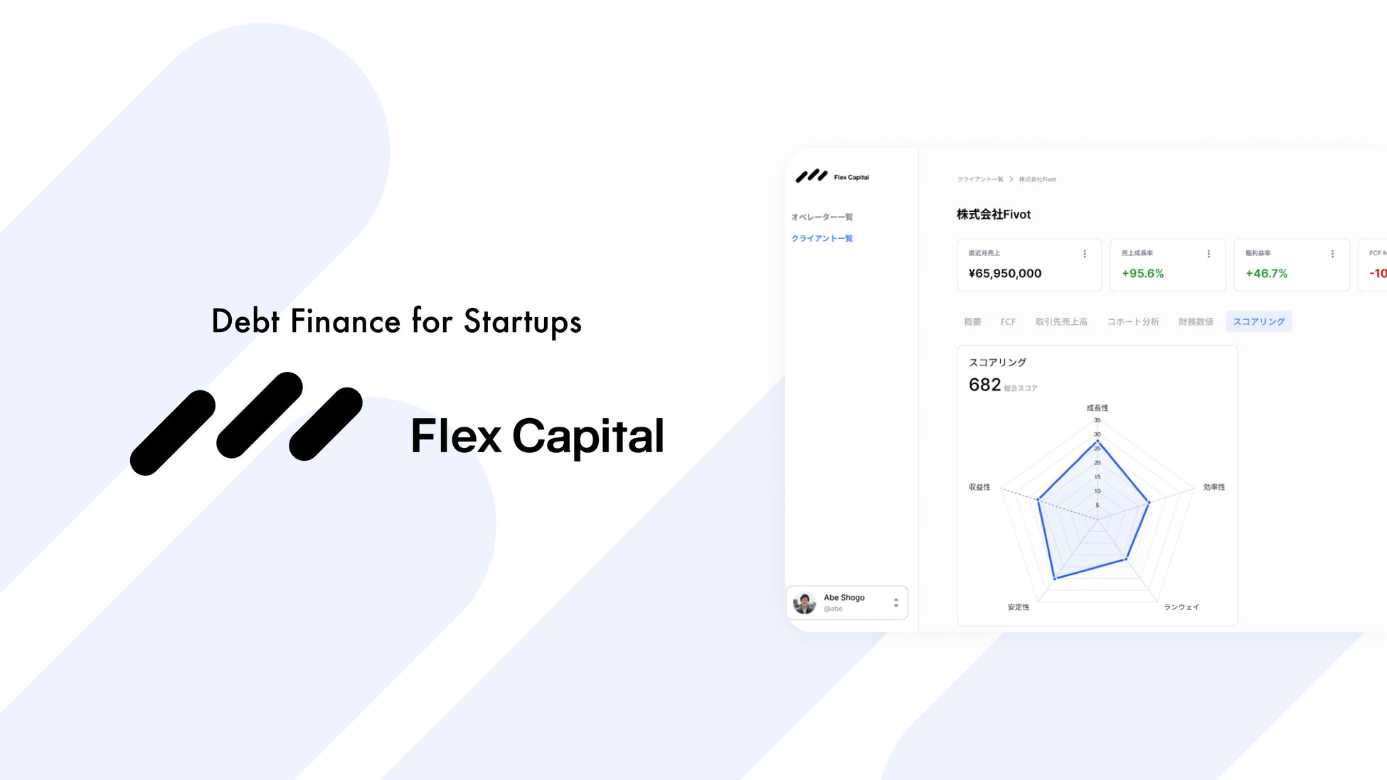 Flex Capitalは、スタートアップ向けデットファイナンスサービスです。ベンチャーデットやRBF(レベニューベースドファイナンス)などの金融商品を提供しています。独自のテクノロジーにより最小限の手間と高速の審査を実現し、経営者に寄り添った資金支援のサービスを提供しています。サービス開始後2年9ヶ月で、支援社数100社超・累計実行件数200件超に達しており、さらなる事業拡大を行っていきます。