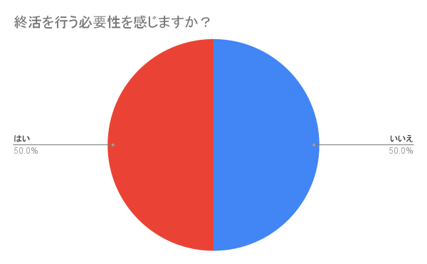 母数が減っているので割合は40代に比べて終活の必要性を感じていない人が増えていますが、人数そのものは4人しかいません。