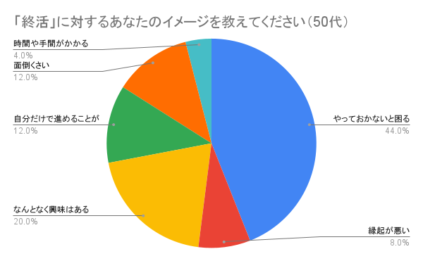 ここからは、回答者が抱く終活へのイメージや考えを年代別に紹介していきます。