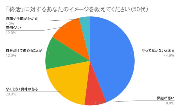 「最後の活動だと感じているので死ぬ前にしておきたいことと思っています。なので、あまり縁起が良いことでないかなと感じます。もうみんなからあなたは死ぬ準備をして行ってくださいの言われているように感じるからです。また、家族が揉めないようにするために、きちり自分で自分の最期を決めるのはさみしいです。(縁起が悪い・30代 女性)」