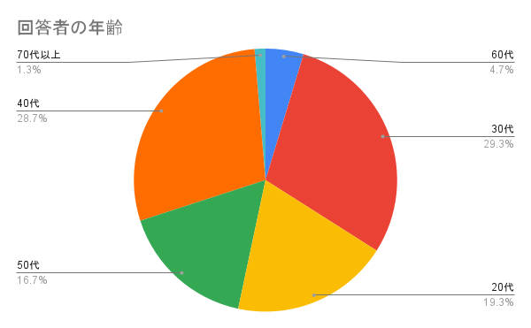 今回、アンケート回答者の年齢層は20代と30代だけで半数近くを占めています。