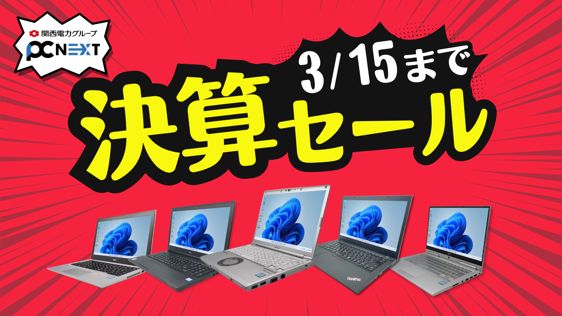 関西電力グループの再生パソコン専門店「PC next 」で3/7から決算セールを開催!全てのパソコンが対象