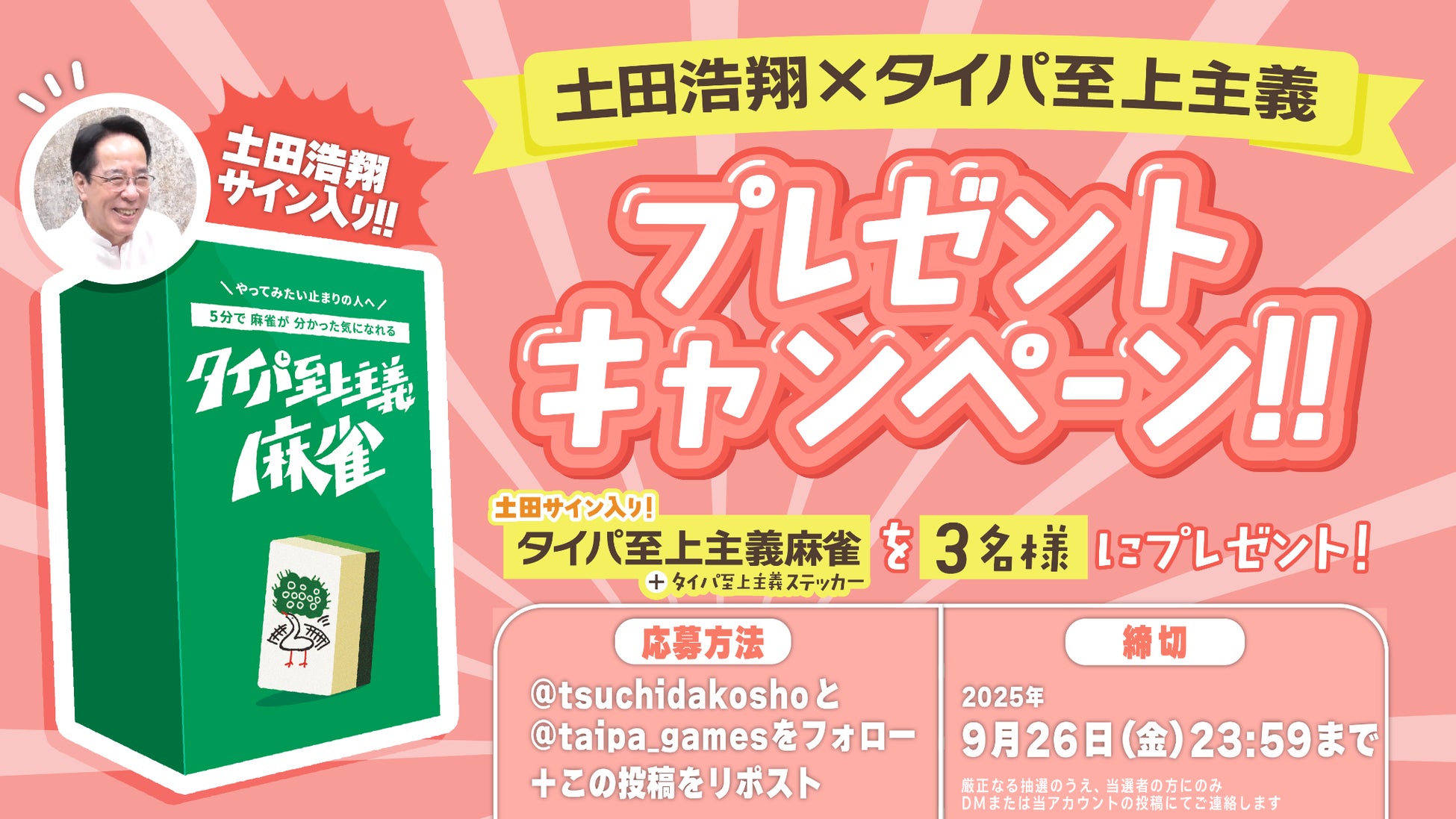 さらに、動画公開を記念し、出演プロの直筆サイン入り『タイパ至上主義麻雀』が当たるプレゼントキャンペーンを 9月12日(金)〜9月26日(金) の期間限定で開催いたします。