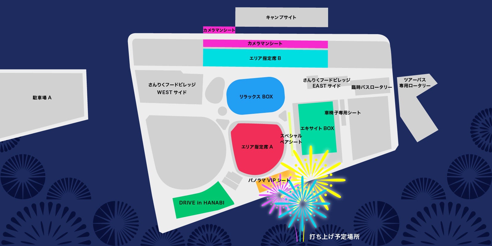 ※コロナウイルス感染拡大対策としてソーシャルディスタンスを確保するために、今回は無料観覧エリア及び無料駐車場は設けておりません。必ず事前に観覧チケットを購入してご来場ください。