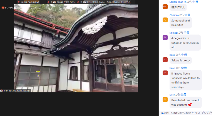 海外旅行が少しずつ再開され、自由に海外との行き来ができる日は近づいていますが、日本文化のコトやモノについて、もっとよく知ってもらい、日本を好きになってもらいたい、オンラインツアーで日本を身近に感じてもらいたいと言う願いの元、今回の開催に至りました。