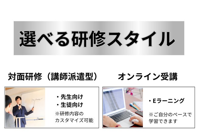 対面研修(講師派遣型)とオンライン受講が選択できます。