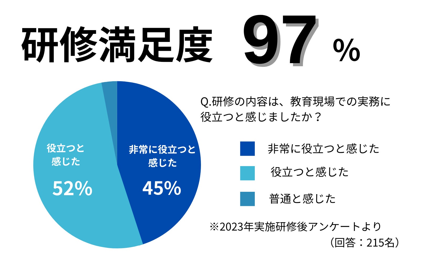 受講者アンケート(215名が回答)でも約97%の方にご満足いただいております。