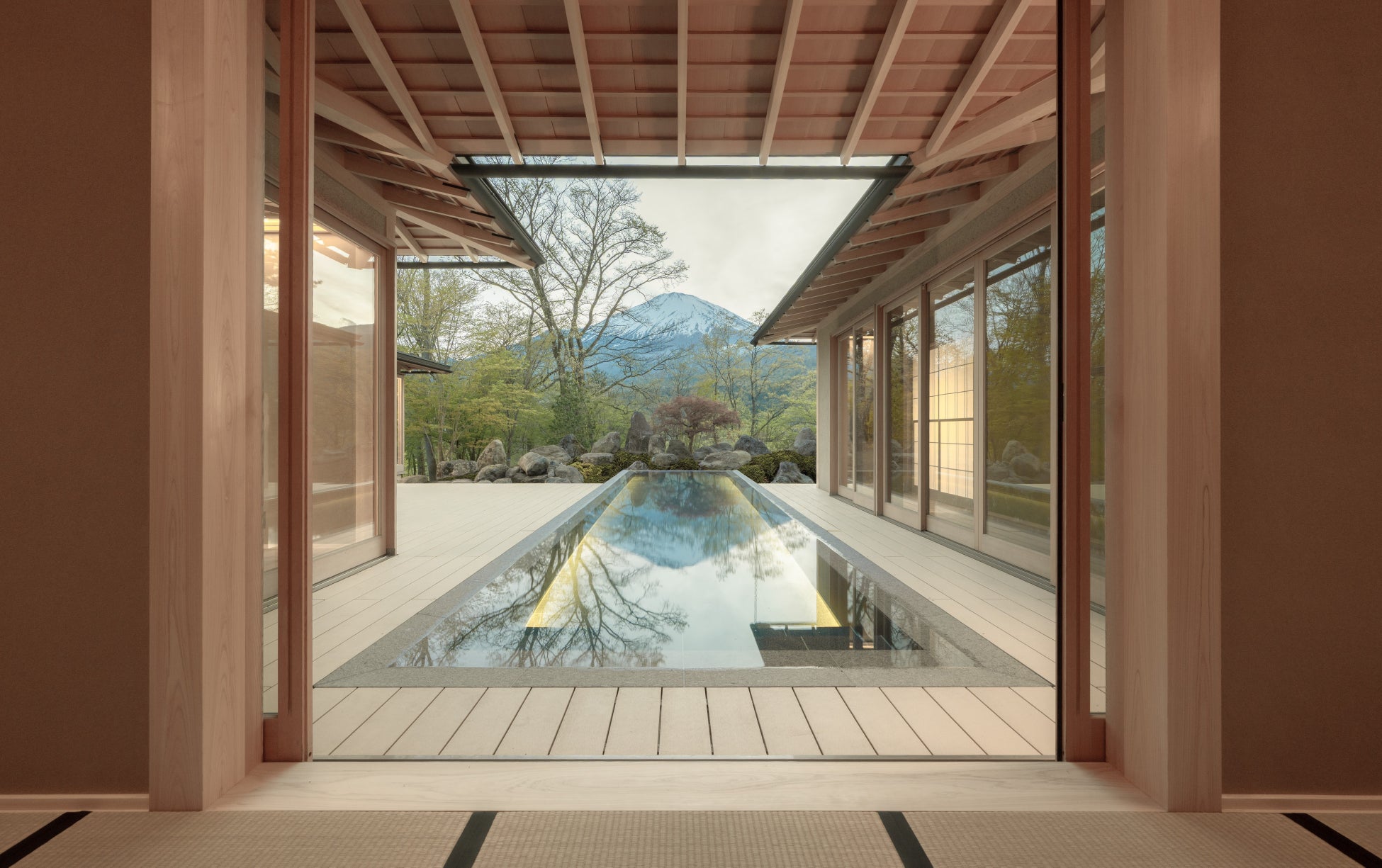 「GORA KADAN FUJI GOLF」と共に2025年7月に開業する宿泊施設「GORA KADAN FUJI」は、箱根の強羅花壇で育んだ「和心」のおもてなしのもと、天然温泉やスパ、プールなどを設えた、約5万㎡の敷地に誕生する新しい宿泊施設です。