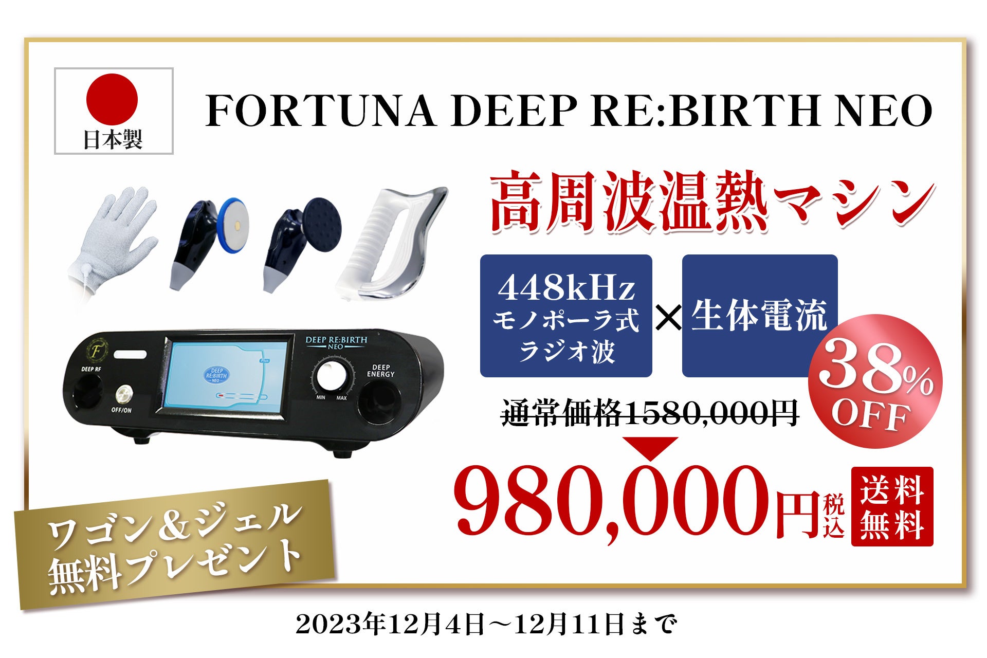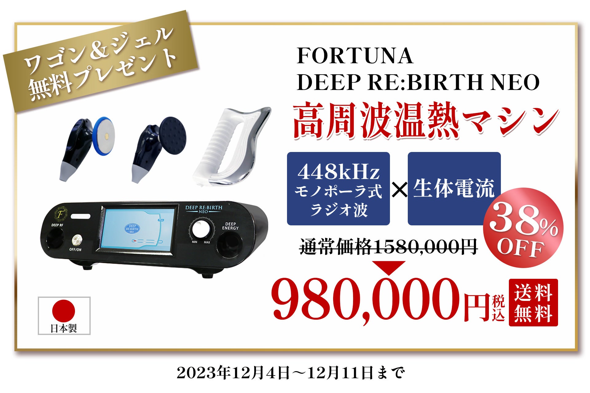 ハンドエステに生体電流をプラス!深部を温めるラジオ波と、深部にテラヘルツ波を届ける微弱電流を搭載したFORTUNA DEEP RE:BIRTH NEOが無料アップデート
