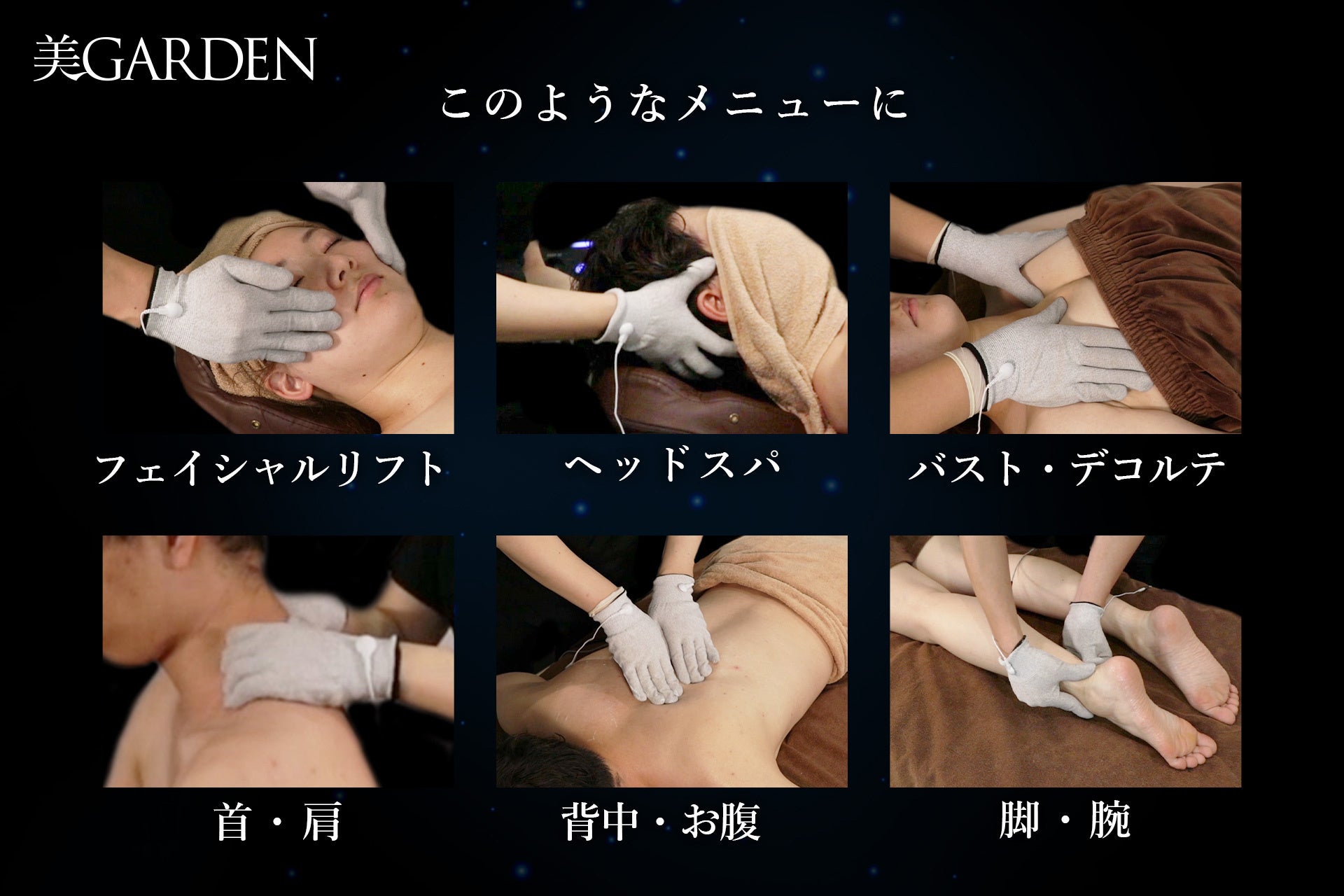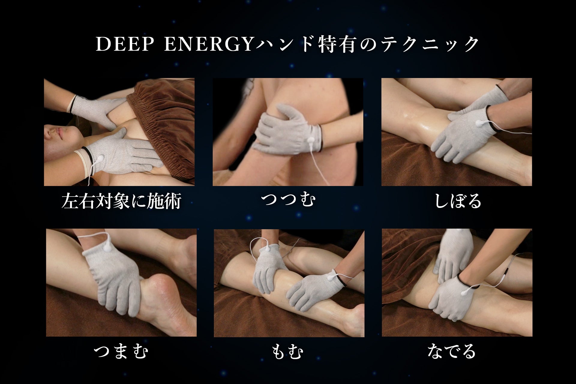 DEEP ENERGYは美ガーデン独自で開発した電流の名称です。マシンから電気を流し、体内に入り込む際に毎秒1兆回振動するテラヘルツ波に変換しています。テラヘルツ波は遠赤外線などに比べ体の深部に到達できるという特性があります。全身に育成光線を届けるトリートメントです。ディープエナジーによるテラピーエステは老若男女問わず提供可能。筋膜リリースエステも最速で叶います。