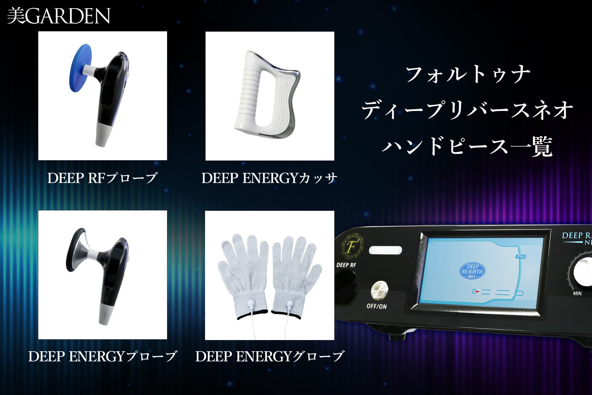 FORTUNA DEEP RE:BIRTH NEOでは従来通り「DEEP RFプローブ」「DEEP ENERGYプローブ」「DEEP ENERGYカッサプローブ」に加え、「DEEP ENERGYハンドグローブ」が今後標準搭載になります。