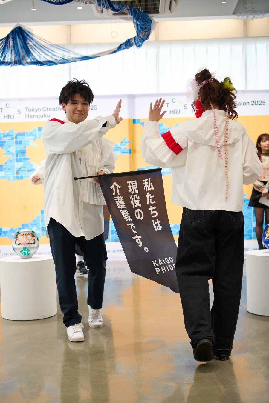 「Tokyo Creative Salon 2025」(TCS25)は、2025年3月13日(木)~3月23日(日)まで、東京の10エリア(丸の内、日本橋、銀座、有楽町、赤坂、渋谷、原宿、羽田、六本木、新宿)を中心に開催された国内最大級のファッションとデザインの祭典です。その一環として「ウラハラフェス ストリートエナジー2025」内にて、介護業界のイメージ刷新と介護職の社会的評価を高めることを目的に「LiNK WALK」が開催されました。