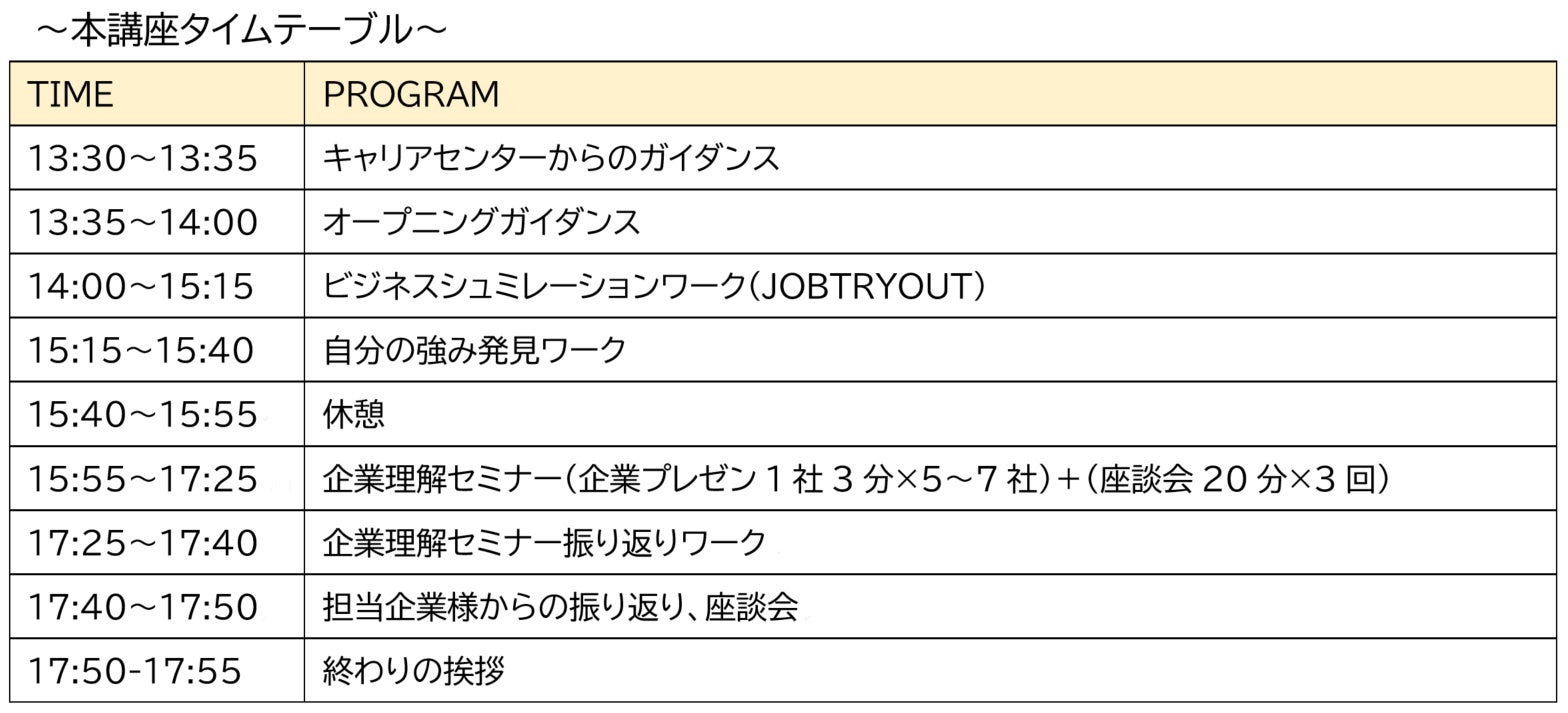 また、本講座には弊社およびジェイ・ブロードのお取引先企業にも協賛企業としてご参画いただき、多種多様な業界・仕事理解の促進と各業界で活躍する社会人との出会いの場を提供いたしました。