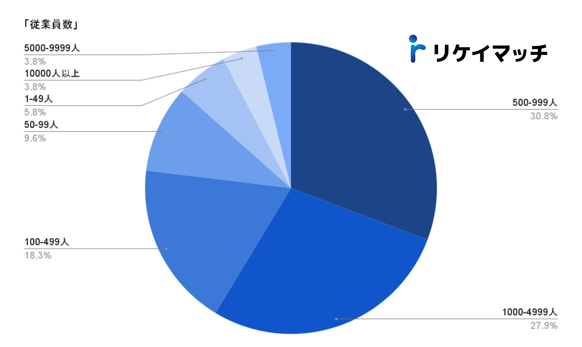 従業員数別では、100-4999人規模の企業を中心に様々な規模の企業から回答がありました。当社が準大手・中小規模の企業を中心とした採用支援を行っていることから、この規模の回答が特に多くなっております。