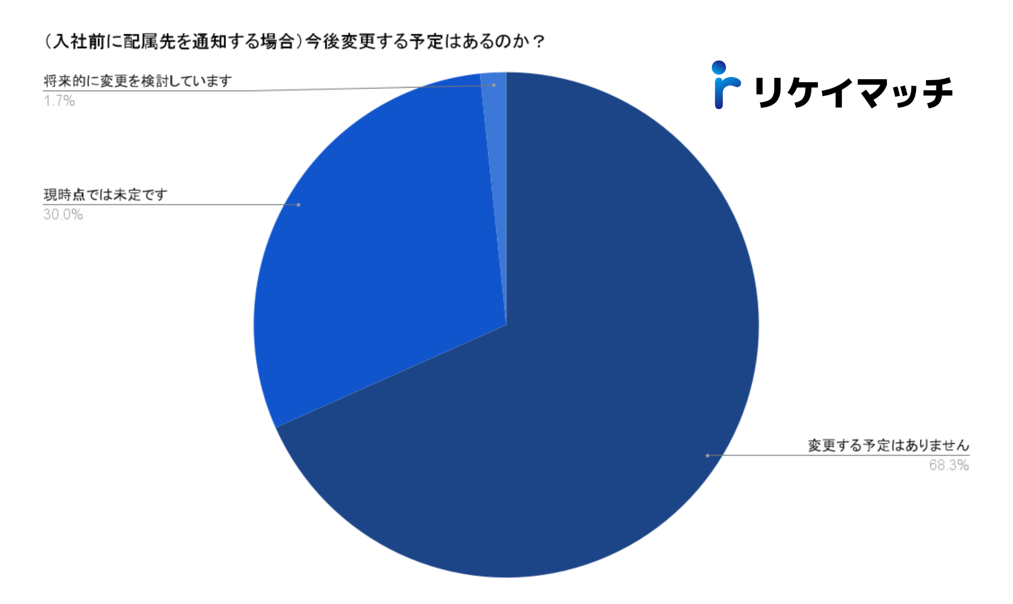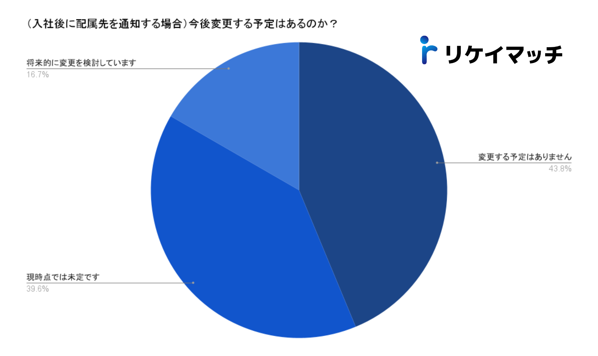 入社後に配属先を通知する企業のうち、16.7%が将来的に変更を検討。