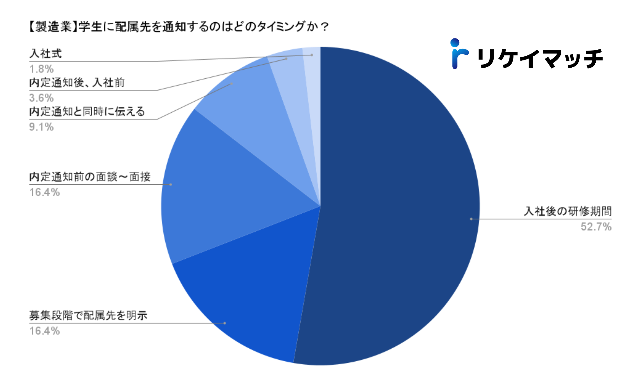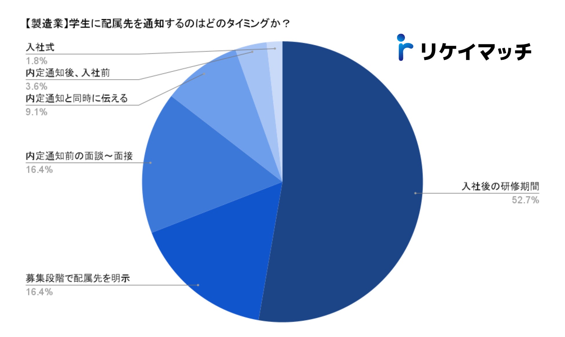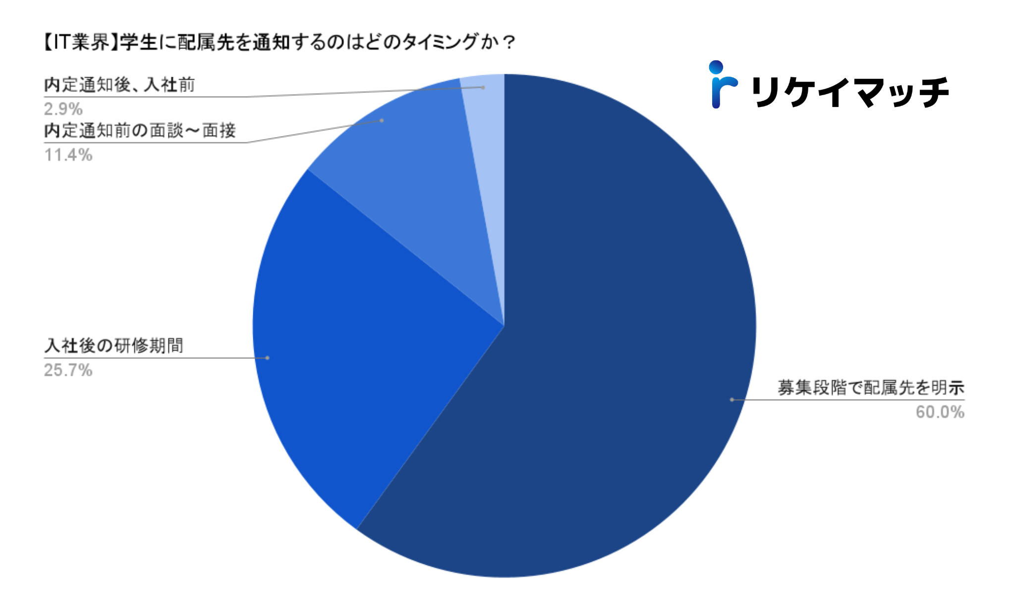製造業は研修期間中、IT業界は募集段階に配属先を通知する企業が多い。