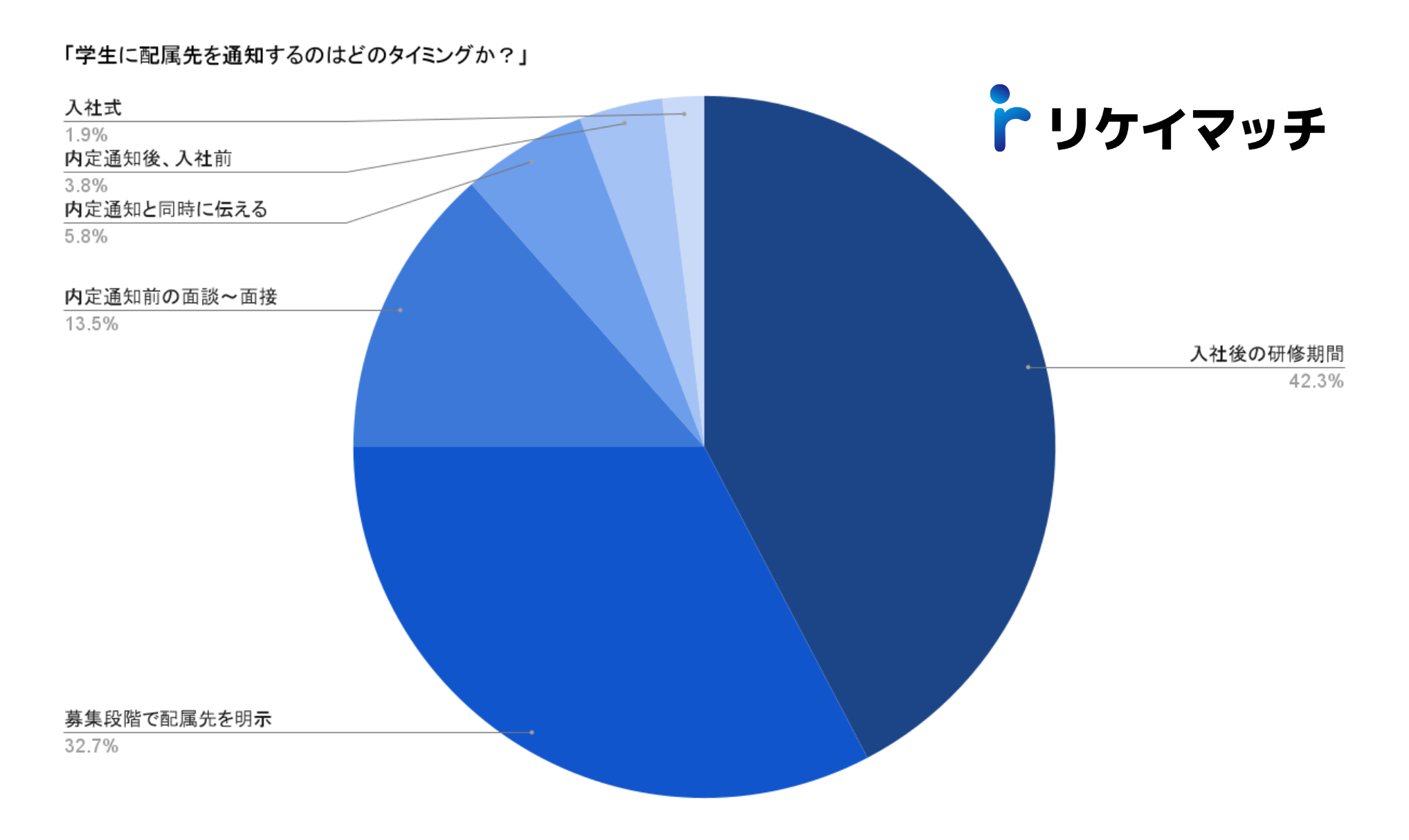 配属先通知は「入社後の研修期間」が最多で42.3%。