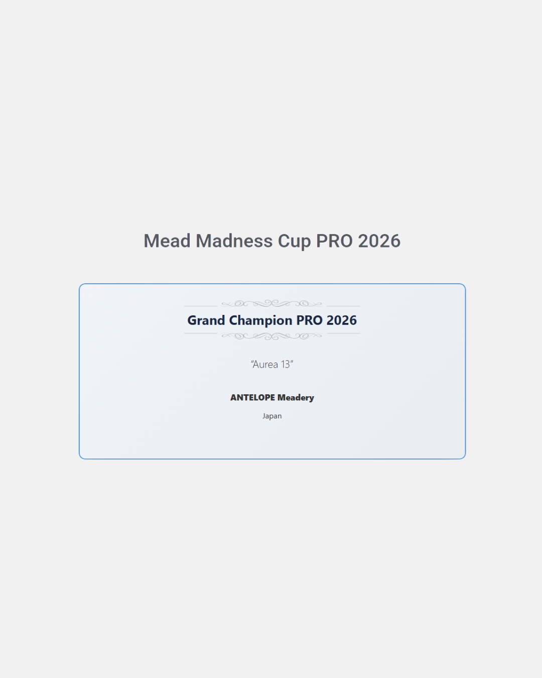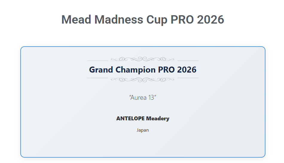 2026年に開催された世界最大級のミードコンペティション「Mead Madness Cup PRO 2026」において、滋賀県野洲市のミーダリー〈ANTELOPE Meadery〉が出品したミード「Aurea 13」が、大会最高位である「Grand Champion PRO 2026」を受賞しました。