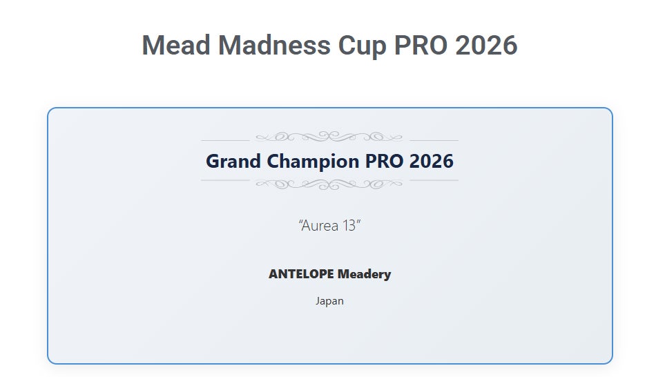 滋賀県野洲市のミード醸造所「ANTELOPE」、世界最大級ミードコンペティション「Mead Madness Cup 2026」で日本勢初のGrand Champion PRO 2026を受賞