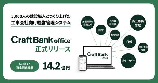 クラフトバンク、3,000人の建設職人とつくり上げた工事会社向け経営管理システム「クラフトバンクオフィス」を正式リリース