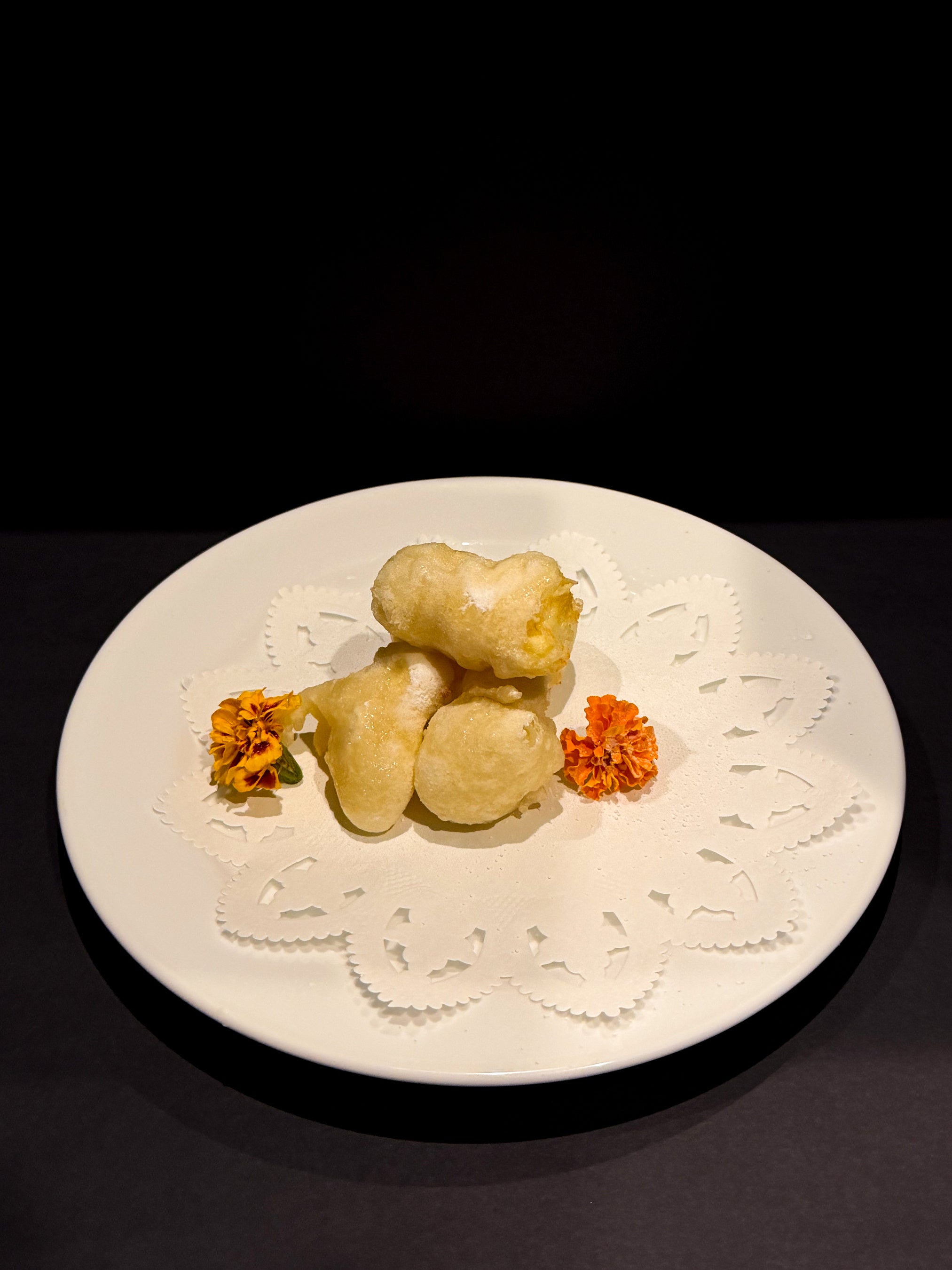 「チーズデザート6P マダガスカルバニラ」を包んだ、デザート感覚の揚げピザ。カリッと揚げた生地にはちみつをひと垂らし、優しい甘さに仕上げました。